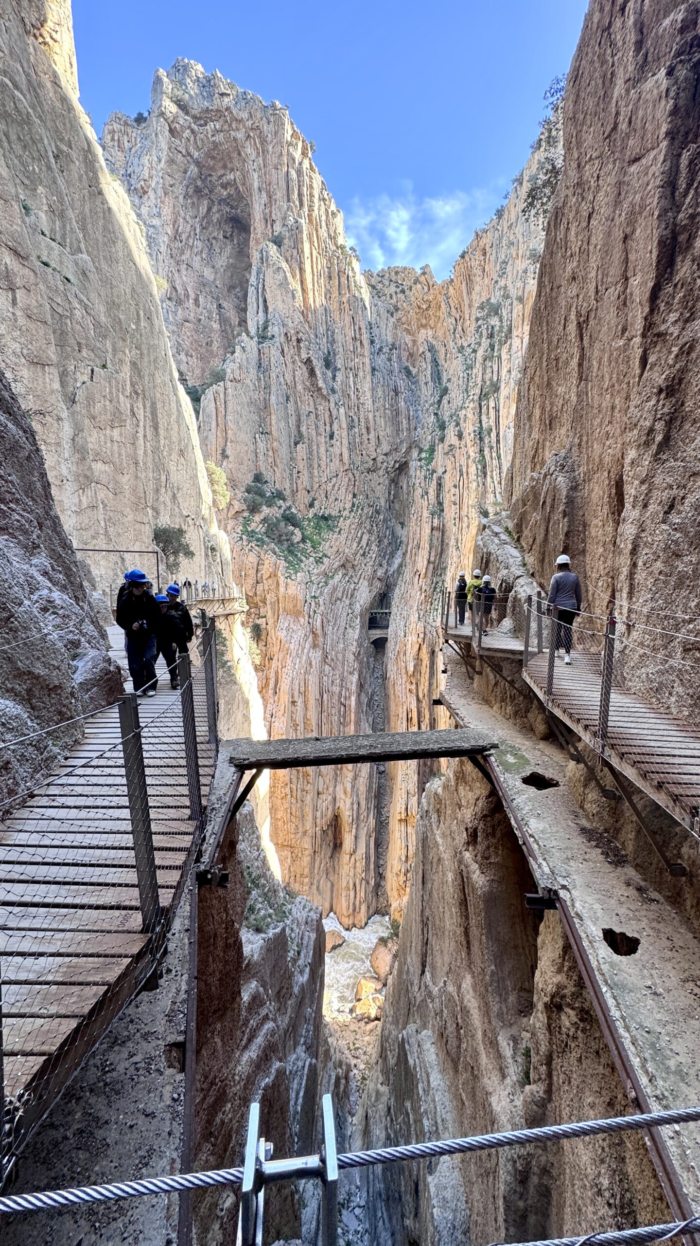 Etter hvert kom vi frem til nye klipper og nye stier langs fjellsidene. Kanskje den meste spektakulære delen av turen. For her går du 100 meter over elven, på smale trestier som klamrer seg fast rundt hver sving i juvet. Flere utkikkspunkt underveis – Kodak moments! Stien er så smal at det under ingen omstendigheter er lov til å gå bakover, kun fremover. Det er ikke god plass til å krysse andre turgåere, så man må vente på at de foran går videre før en selv følger på.