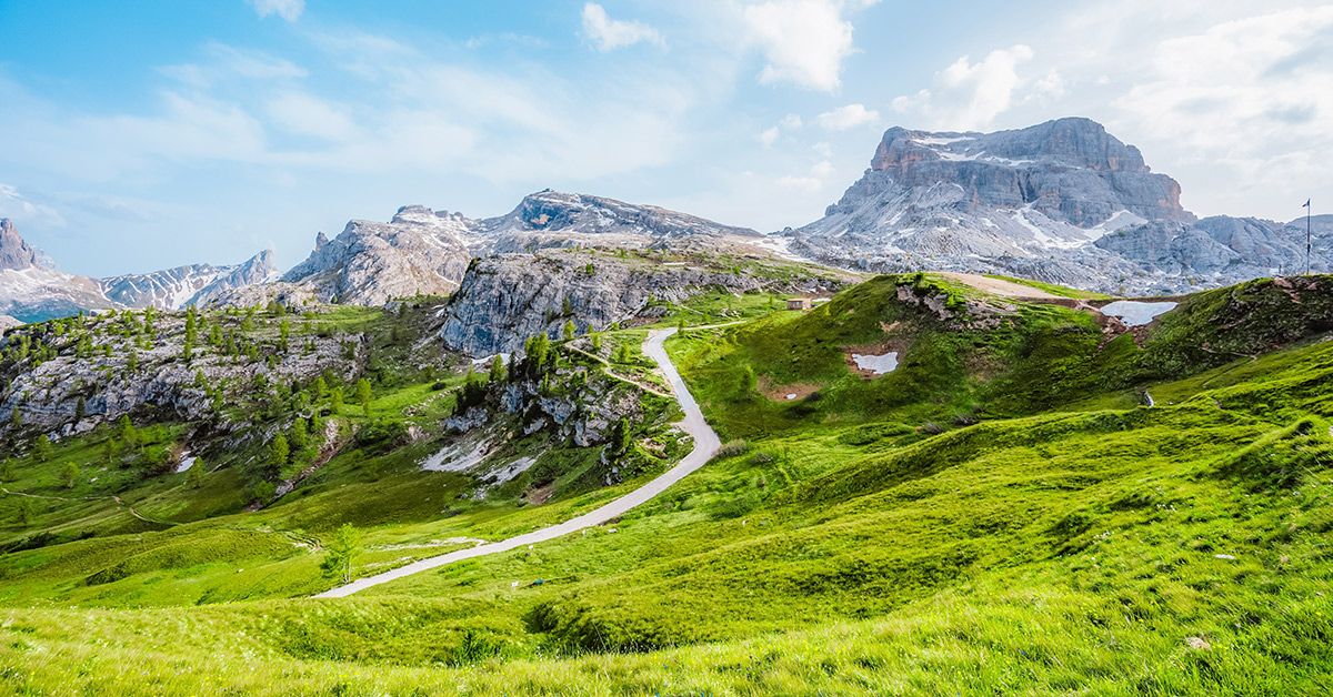 Fra toppen kan du velge å ta taubane ned til Falzarego-passet – eller følge stien videre mot Pocol. Derfra går det lokalbuss til dagens endestopp: Cortina d’Ampezzo, hvor du overnatter.