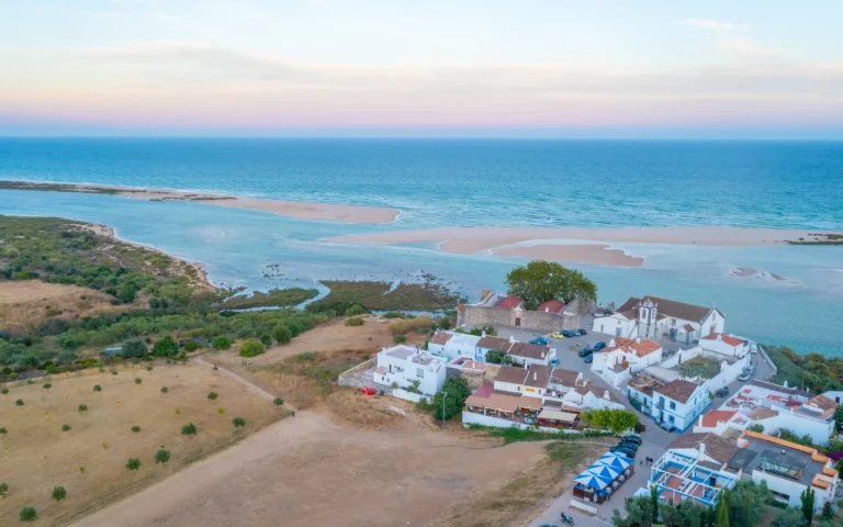 Videre går du gjennom Ria Formosa naturpark – et område med laguner, våtmarker og øyer, kjent for sitt rike fugleliv og grønne landskap.
