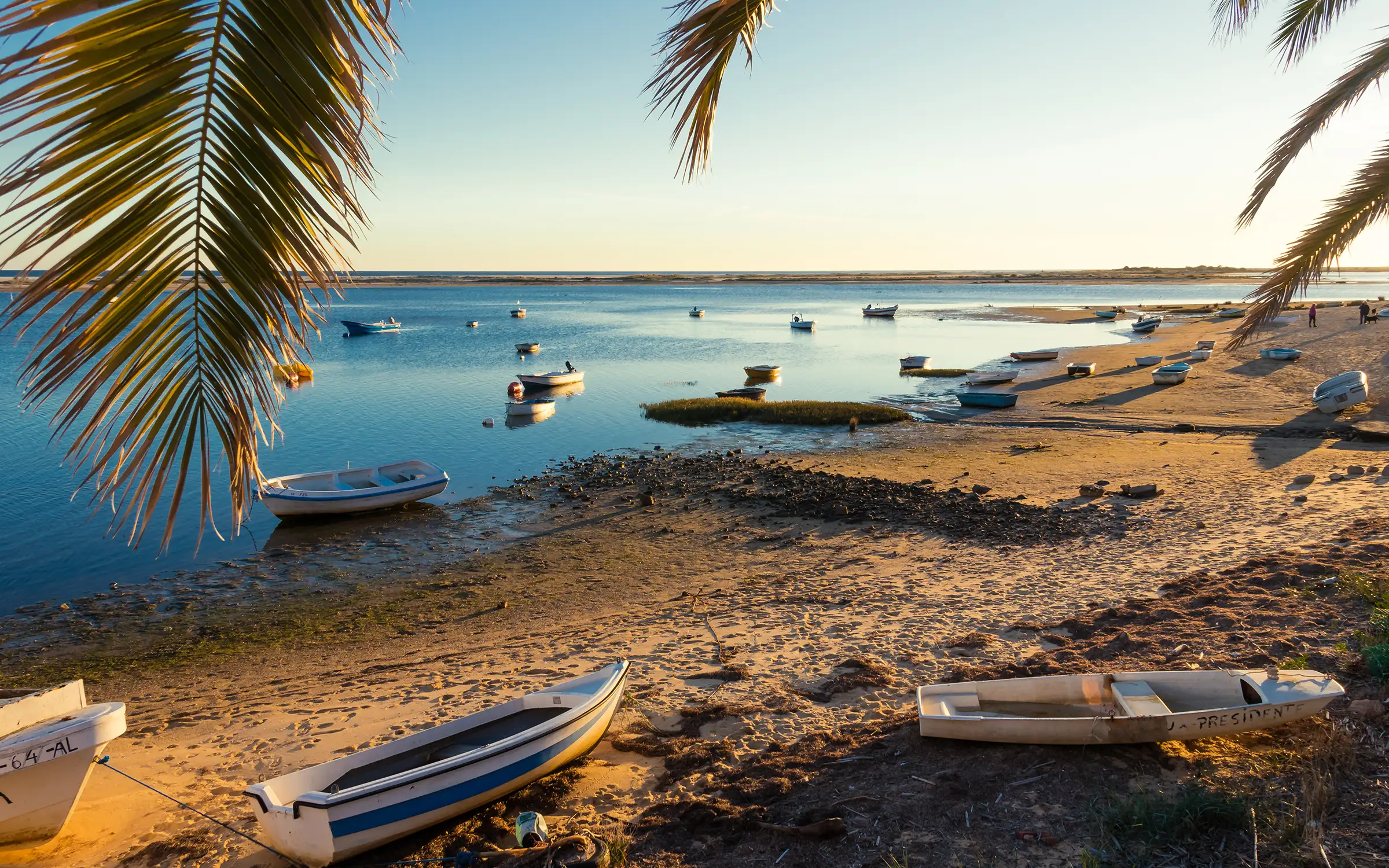 Du følger stien langs lagunen i Ria Formosa naturpark, et av Portugals mest fascinerende våtmarksområder. Her veksler landskapet mellom sandbanker, små øyer og stille vann. Underveis ser du fiskere, fugler og saltarbeidere i full aktivitet – et glimt av det ekte Algarve.