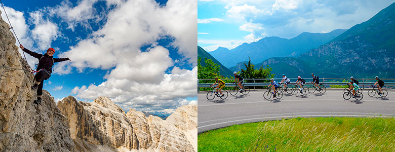 Det blir spennende klatring både i Riva del Garda og i Brentadelen av Dolomittene. Og sykling i Brenta-Dolomittene, gjennom dalene Val di Sole og Val Non, samt over Monte Bondone (klassisk Giro d’Italia fjelletappe). Bedre blir det ikke!