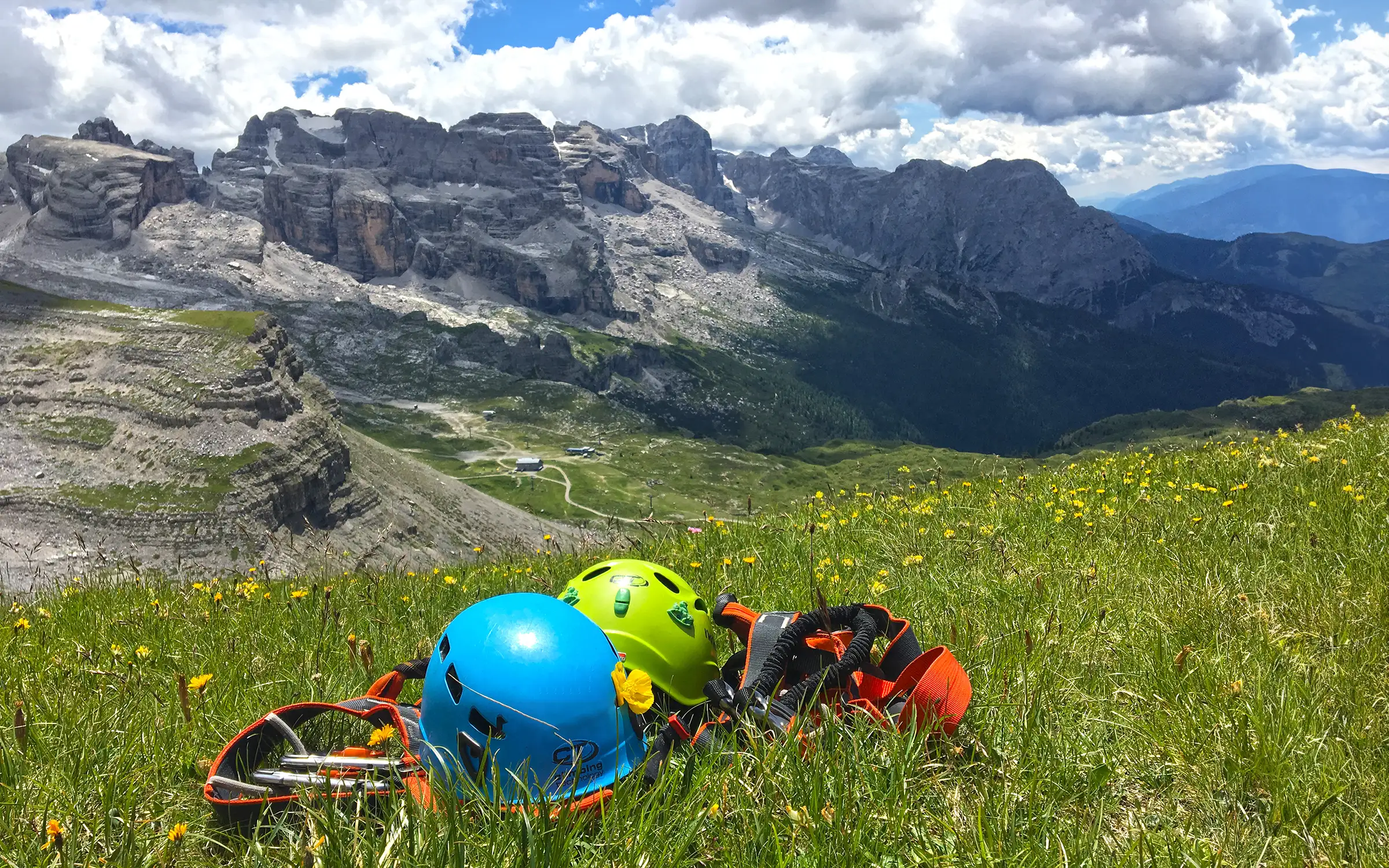 Overnatting på fjellhytter i Dolomittene – spennende fotturer med Via Ferrata – morsomme treninger – sol & bad ved Gardasjen.