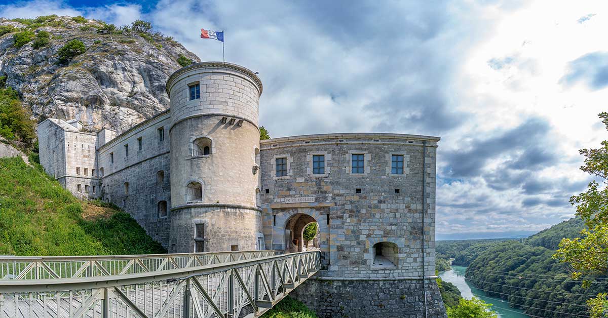 En av severdighetene denne dagen er festningen Fort de l’Ecluse, bygget av hertug av Savoie. Han bygde det i en fjellformasjon som danner en naturlig inngang til Rhônedalen, inn i Frankrike mellom Vuache-fjellene og Jura. Hotellet du bor på denne natter ligger i Seyssel, en by som ligger både i Haute-Savoie (Øvre Savoie) og Ain-departementet.