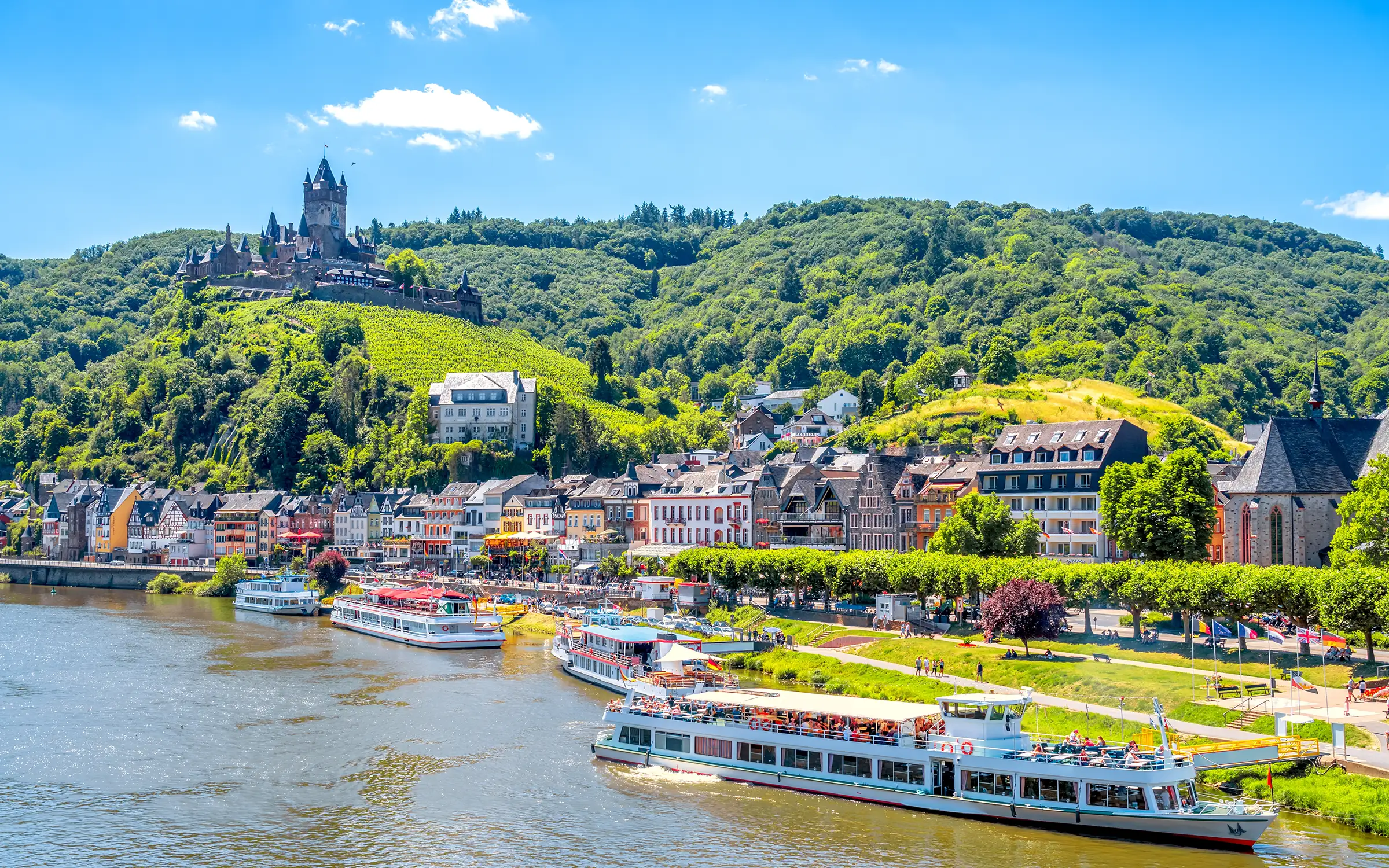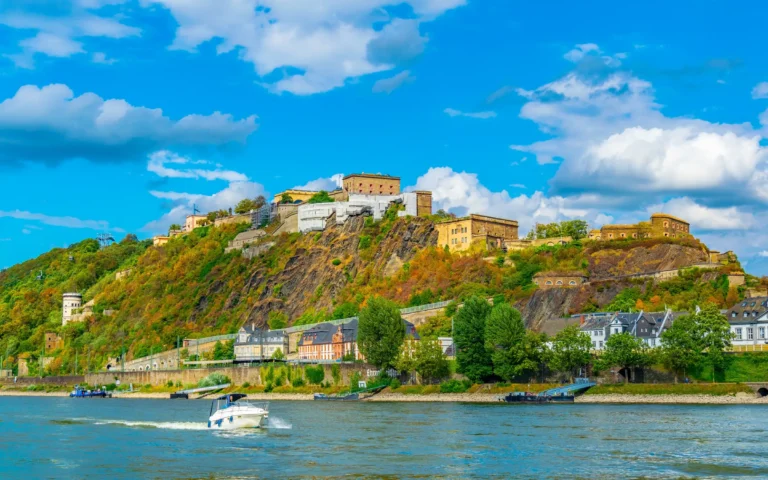 Siste etappe leder deg gjennom små landsbyer og opp til eventyrslottet Eltz, før du når Koblenz – møtet mellom Mosel og Rhinen. Taubanen over elven og utsikten fra Ehrenbreitstein-festningen setter prikken over i-en.