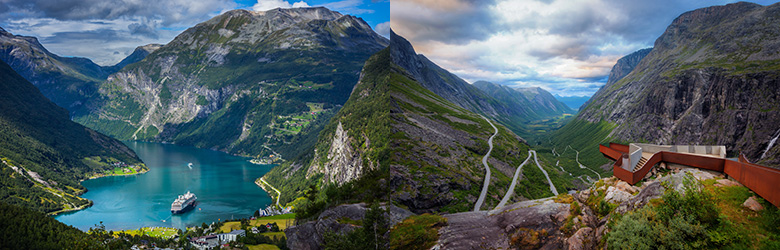Etter lunsj blir det en kort fergetur over Storfjorden til Eidsdal, hvor vi spiser lunsj. Så bærer det igjen oppover til det kjente utkikkspunktet Ørnesvingene, hvor man ser ned til Geiranger og utover Geirangerfjorden! Obligatorisk fotostopp.